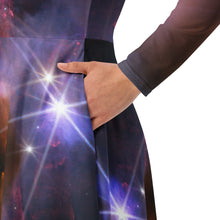 What better way to wear and share the coolest space images than a wonderfully twirl-worthy midi-length dress, with POCKETS! This flattering and functional dress features the JWST First Year of Science image of the Rho Ophiuchi cloud complex, which lies toward the center of the Milky Way Galaxy. It is the closest star-forming region, where cool, dense gas and dust is starting to condense, heat up, and form new stars. Rho Ophiuchi is approximately 400 light-years from Earth toward the constellation Ophiuchus, the Serpent Bearer.