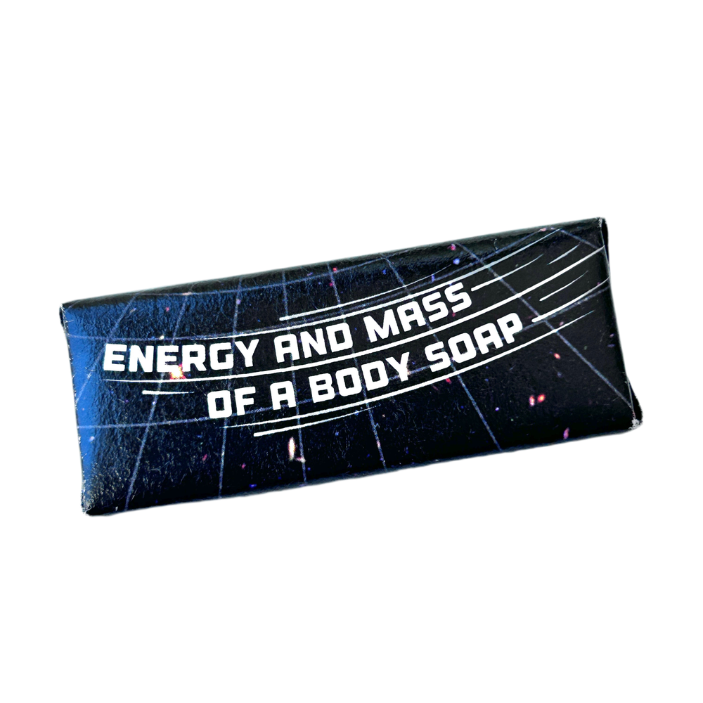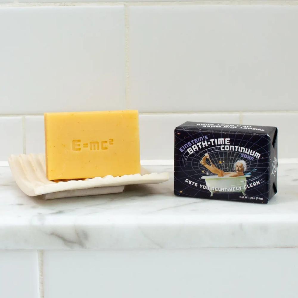 Einstein's Bath-time Continuum soap is a relatively great way to wash away the simplicity of Newtonian physics and soak in the ripples of spacetime instead! Bar soap in paper wrapping makes a great guest soap or gift.